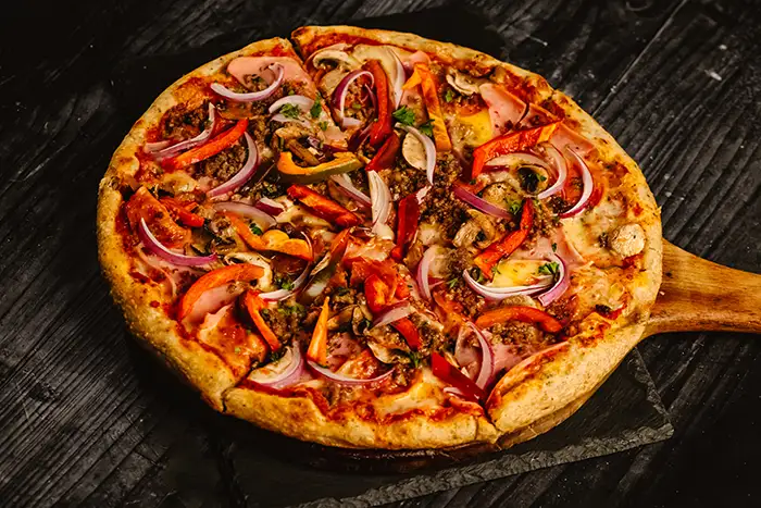 Groud beef, ham, pepperoni, mushrooms, red pepper, red onionMargarita Pizza